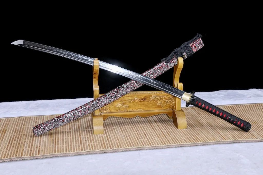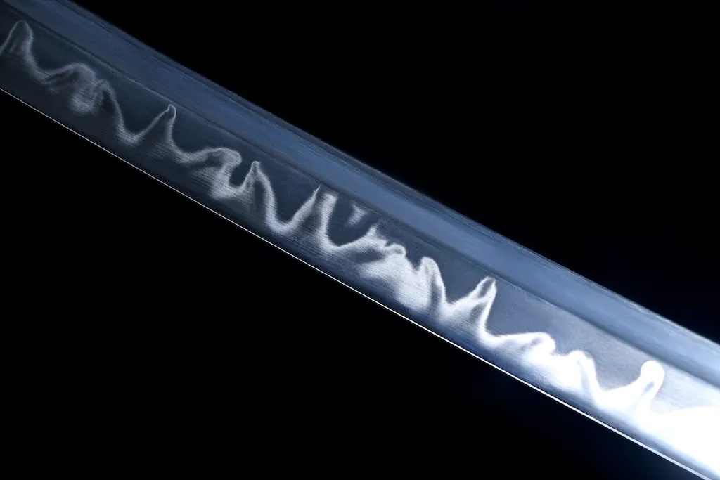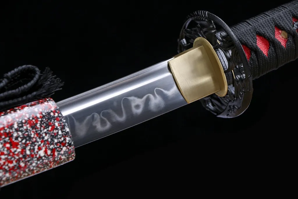 This katana is crafted from high-hardness T10 steel and traditionally clay tempered to reveal a distinctive leaf-pattern hamon.