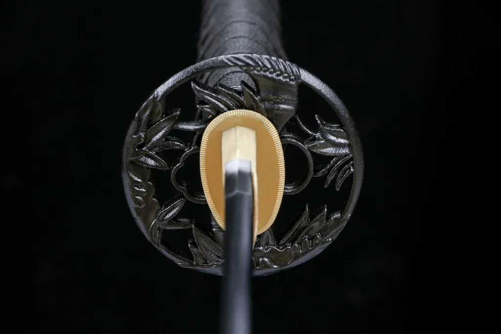 All fittings, including the tsuba, fuchi, and kashira, are crafted from solid iron rather than alloy.