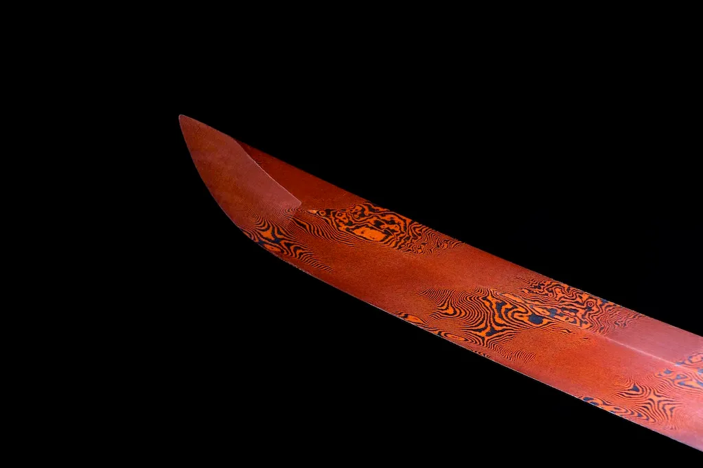 Tanto – Red Heat-Blued Twisted Damascus Steel Blade | Soukyu Sekketsu